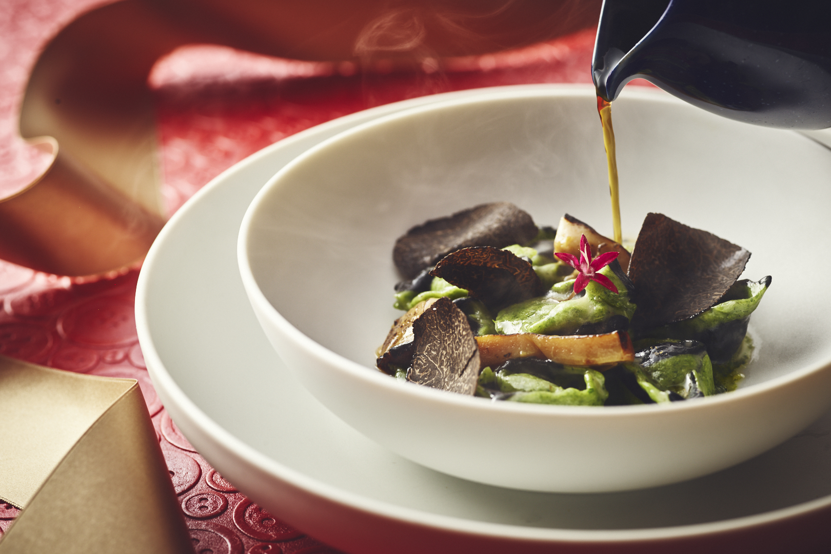 冬に旬を迎える鮟鱇を使用したアクアパッツァや、芳醇な香りを纏う黒トリュフとポルチーニを使用した自家製トルテリーニなど、冬ならではの味覚を堪能できるクリスマス特別コース。イタリア人エグゼクティブシェフ、ダビデ・ディ・ディオが故郷のレシピに日本の食材でクリエイティビティを加えたメニューが揃います。